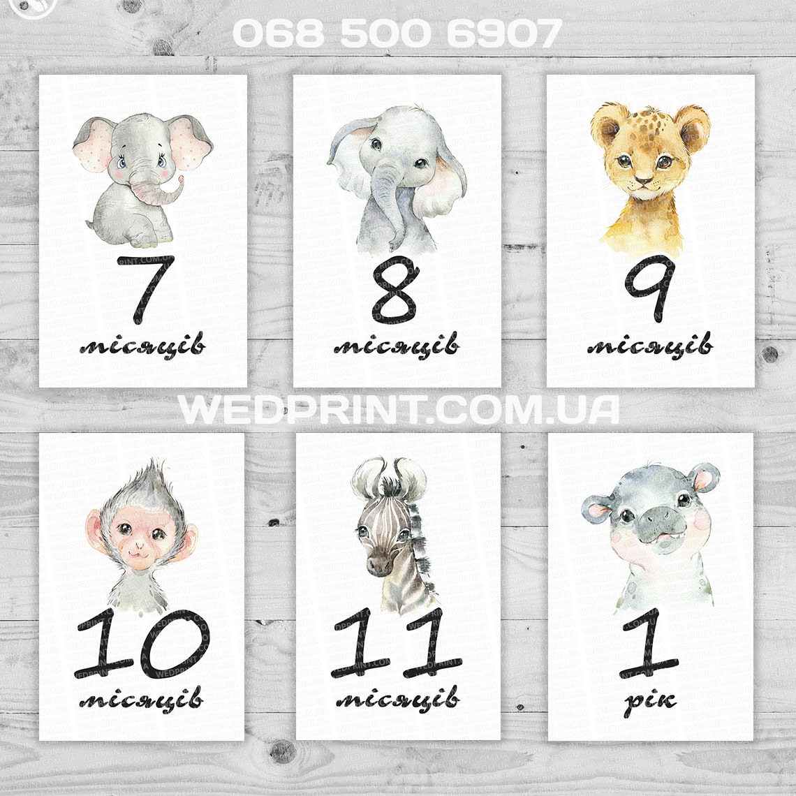 Картки для фотосесії по місяцях з тваринками для новонароджених